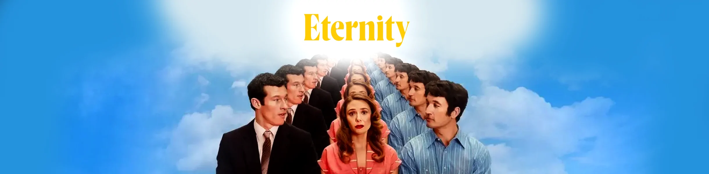 La historia de Eternidad de Apple TV+ producida por A24, nos sitúa en un «más allá» muy particular, diseñado como una especie de centro de tránsito o aeropuerto retro.