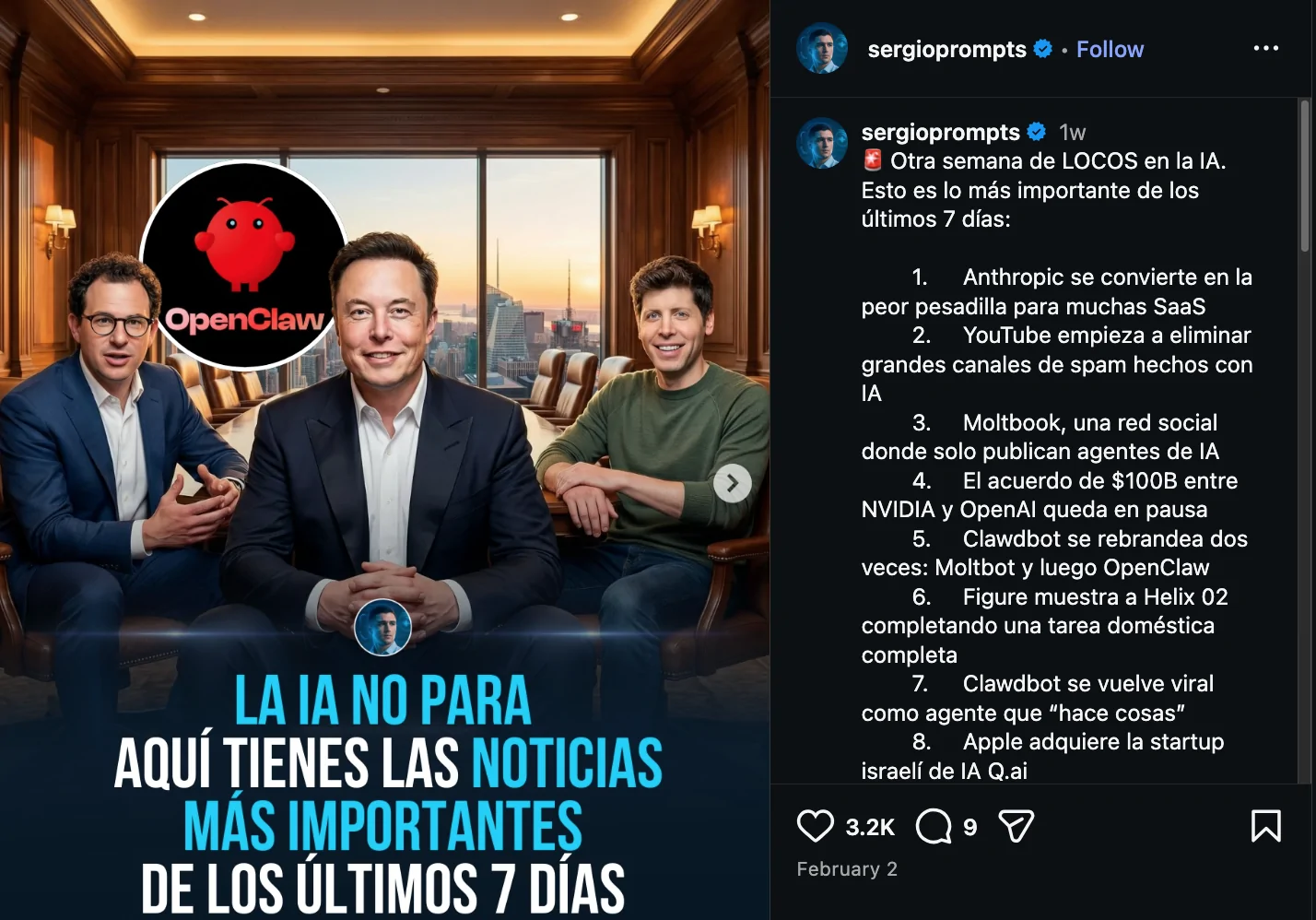 | 🤖 | Moltbook | Nace una red social experimental exclusiva para la interacción de Agentes de IA y el estudio de dinámicas sociales. |