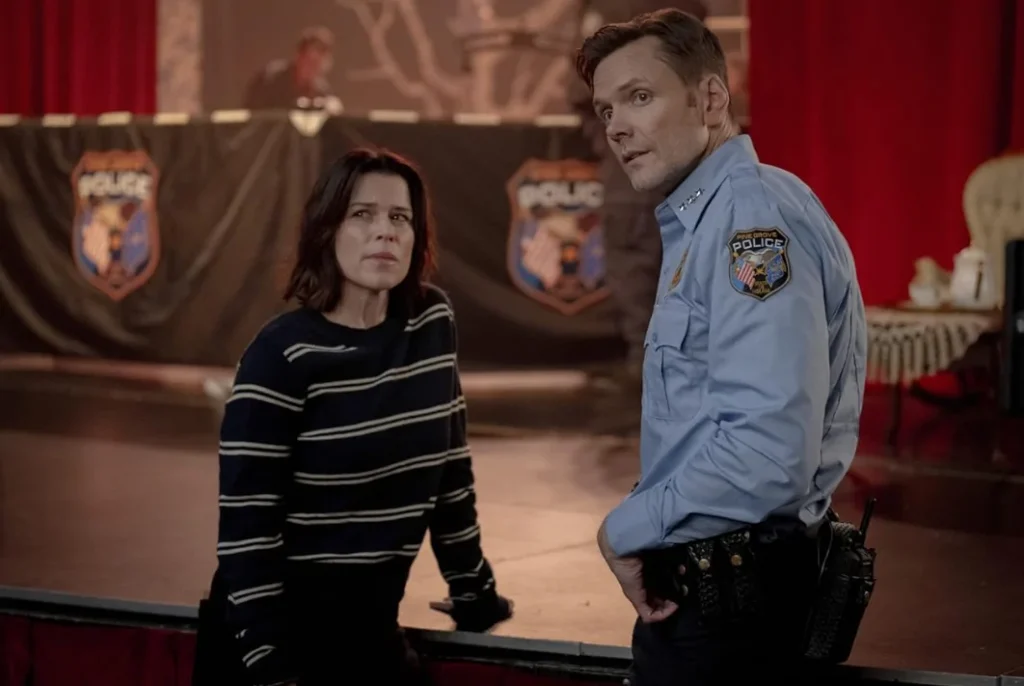 Para quienes no han visto Scream 7 -estrenada el pasado 26 de febrero-, la historia se aleja de Nueva York y de las hermanas Carpenter (tras la salida de Melissa Barrera y Jenna Ortega) para centrarse nuevamente en la «Final Girl» original: Sidney Prescott. Sidney vive ahora en el tranquilo pueblo de Pine Grove, Indiana, junto a su esposo Mark Evans (interpretado por Joel McHale) y sus hijos.
