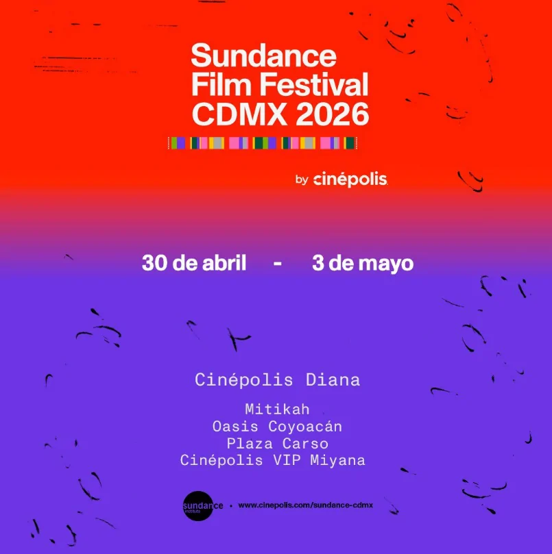 El Sundance Film Festival regresa a la Ciudad de México por tercera vez, del 30 de abril al 3 de mayo de este 2026, en colaboración con Cinépolis. La selección de películas se presentará en cinco sedes de la cadena de salas de cine en la capital mexicana, la curaduría de lo mejor de los largometrajes aún no se detalla.