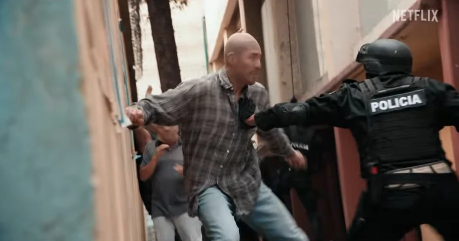 El tráiler comienza con una toma de Adrián Vázquez (José Sánchez) frente a un espejo, acomodándose un bigote muy poblado y relamido. Se escucha una voz en off que dice: «En México, si no eres el que muerde, eres el que se arrastra». Vemos un montaje rápido de su transición de ser un hombre de negocios fracasado a caminar con confianza por pasillos gubernamentales lujosos, ahora bajo su alias: «El Serpiente».