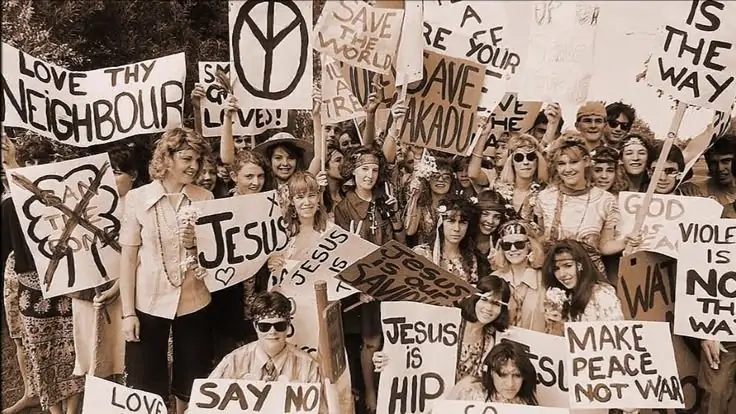 El «Jesus Movement» fue un fenómeno sociorreligioso masivo (finales de los 60 a mediados de los 70) que unió la contracultura hippie y el cristianismo evangélico. Tras el «Verano del Amor», muchos hippies desencantados por el abuso de drogas y el vacío existencial encontraron en Jesús un revolucionario sencillo y lleno de amor, alejado de las estructuras rígidas.