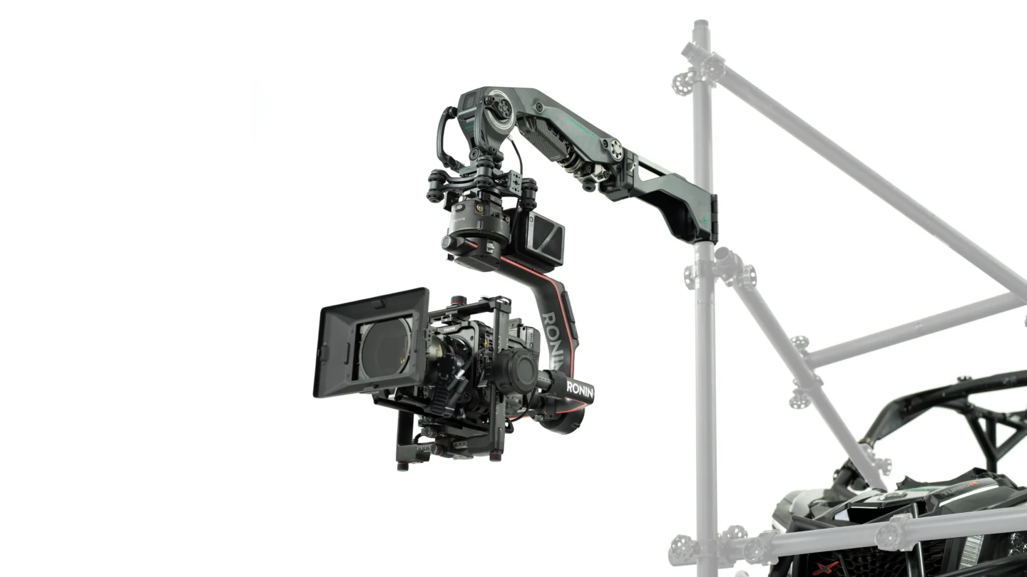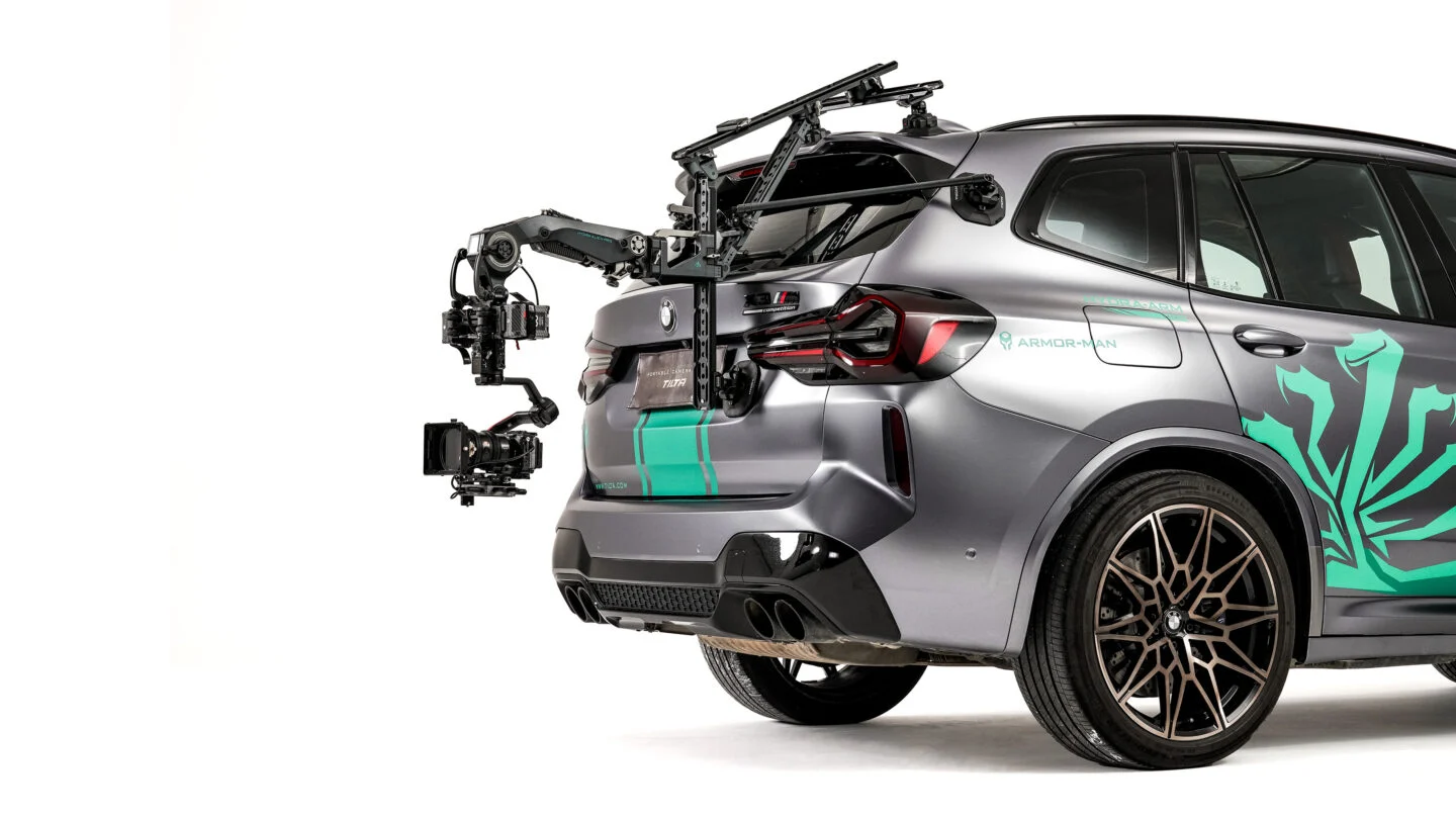 Una de las mayores ventajas es la capacidad de operación remota. A través del mando Nucleus Nano II de Tilta, el operador puede estar sentado dentro del coche mientras controla el movimiento del gimbal y la intensidad de la amortiguación del brazo mecánico. Esto, además de ser más cómodo, es mucho más seguro que intentar operar la cámara desde fuera.