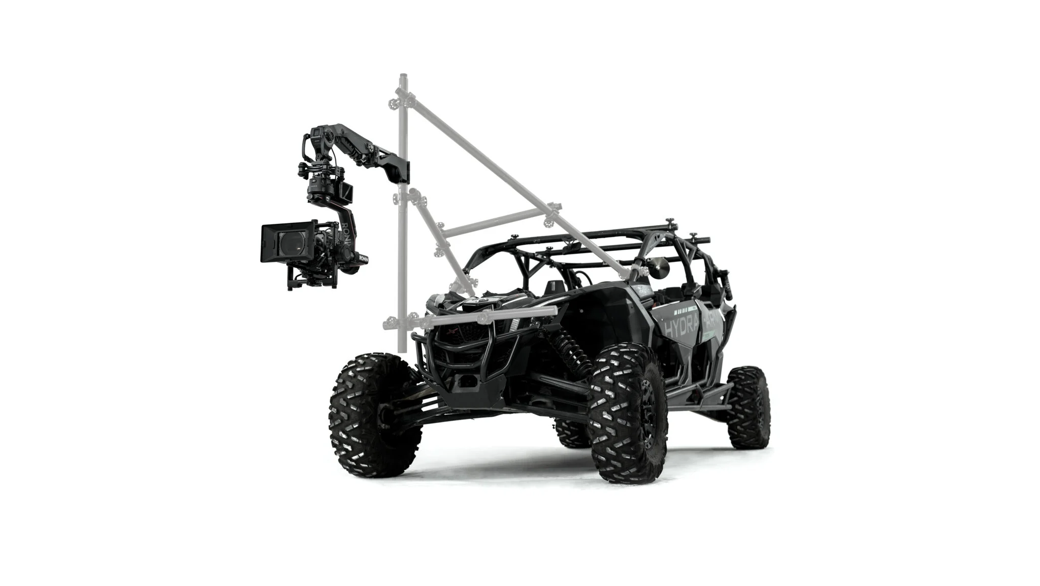 Básicamente es un exoesqueleto de alta tecnología para la cámara que se adhiere a casi cualquier vehículo. A diferencia de un simple tripié con un soporte de ventosas convencional, el Hydra Alien Pro es un sistema completo de amortiguación y control remoto.