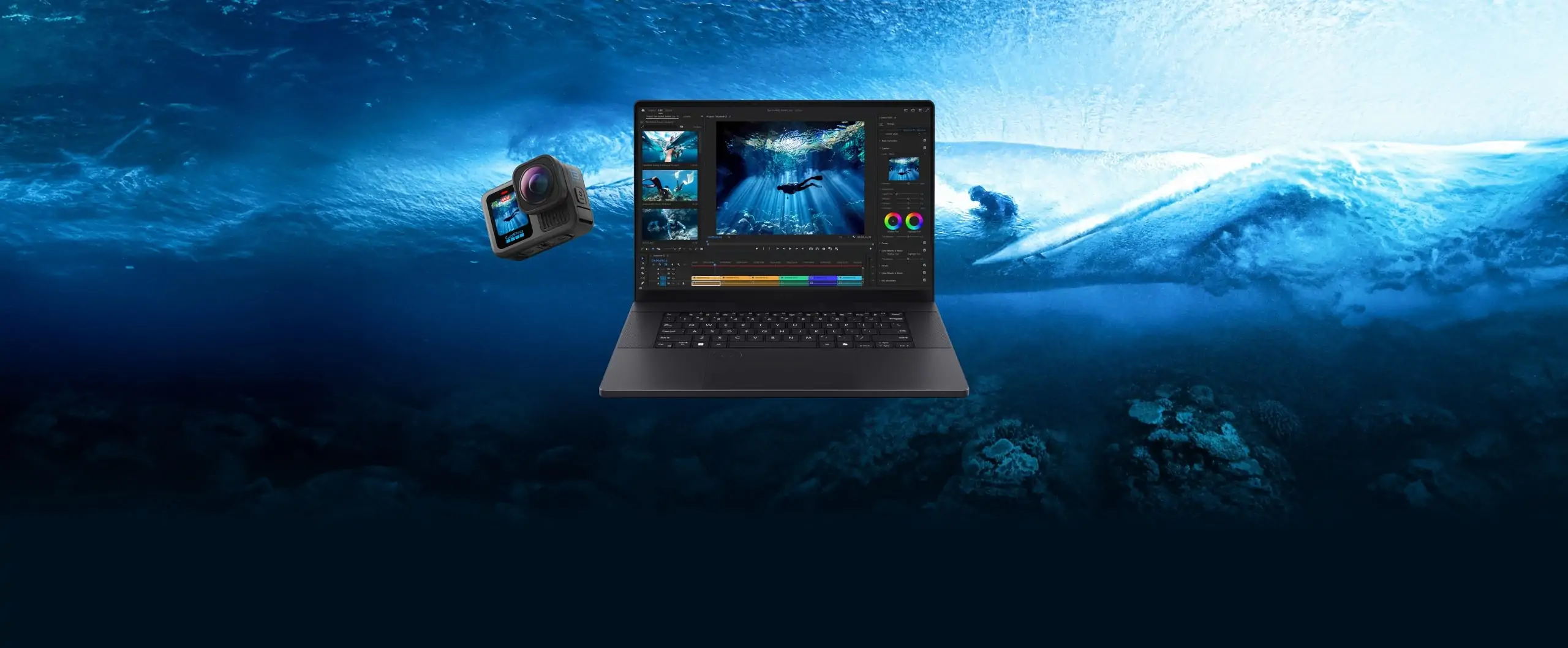 Es una gran propuesta para el aventurero profesional. La laptop incluye una tecla dedicada para el acceso directo a herramientas de edición de GoPro permitiendo una postproducción ágil de archivos 360° mediante el software GoPro Player.